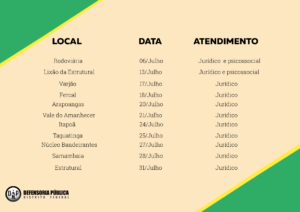 Este mês, a população de 12 regiões administrativas que não têm núcleo da Defensoria ou que são mais afastadas da região central da capital federal, terá a oportunidade de receber orientação jurídica e psicossocial de forma gratuita.