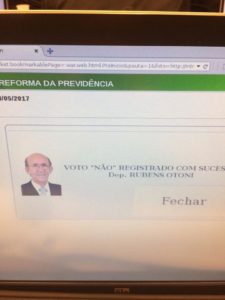 De acordo com a assessoria do parlamentar, seu voto seguiu a bancada do PT, que se posicionou unanimemente contrária a aprovação do substitutivo. “A luta continua, precisamos intensificar as mobilizações e audiências para informar a sociedade sobre esse verdadeiro pacote de maldades do governo Temer”, afirmou Otoni.