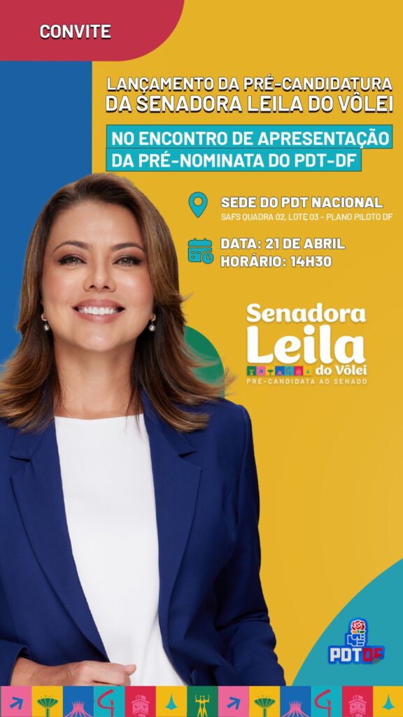 A atividade também marcará a confirmação do nome de Leila do Vôlei (PDT-DF) como pré-candidata à reeleição ao Senado Federal.