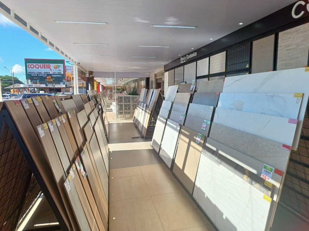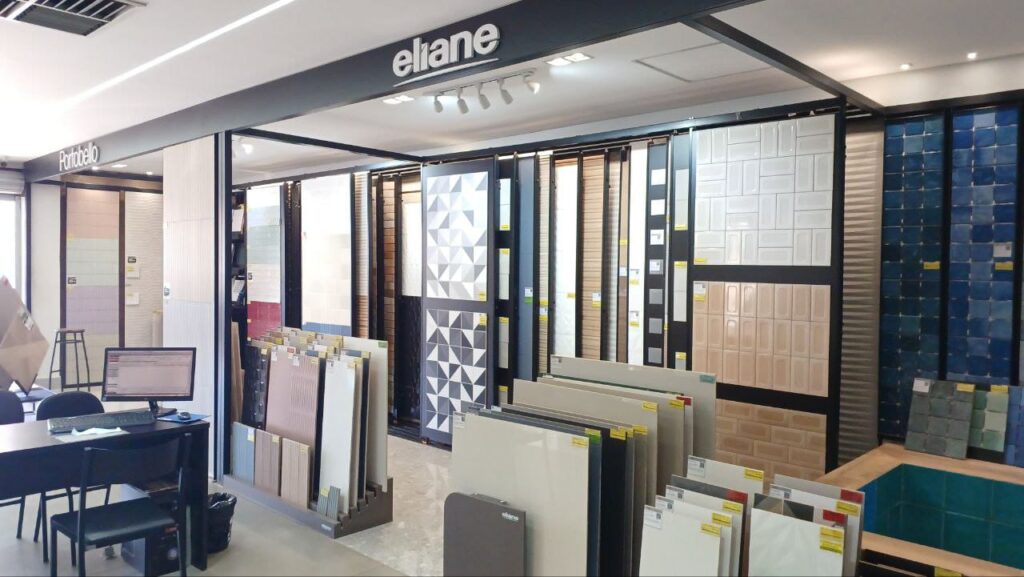 Temos em grandes formatos, grandes marcas, trabalhamos com as maiores marcas do Brasil, nós temos aqui em porcelanatos e revestimentos cerâmicos, marcas como a Portobello, Portinari, Ceusa, Eliane, Delta, Gaudi. Então, as maiores marcas de produtos cedas no Brasil estão aqui dentro da Campeão. Por isso, procuramos sempre manter um showroom atualizado porque o nosso cliente tem uma ideia de paginação de ambientes e, por isso, temos sempre um showroom interno e externo atualizado.