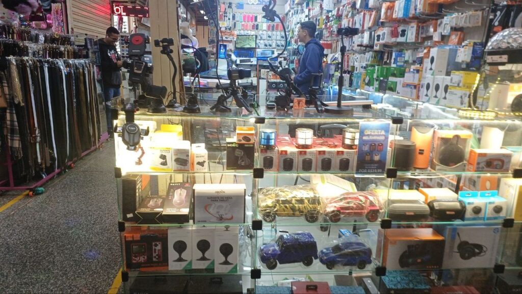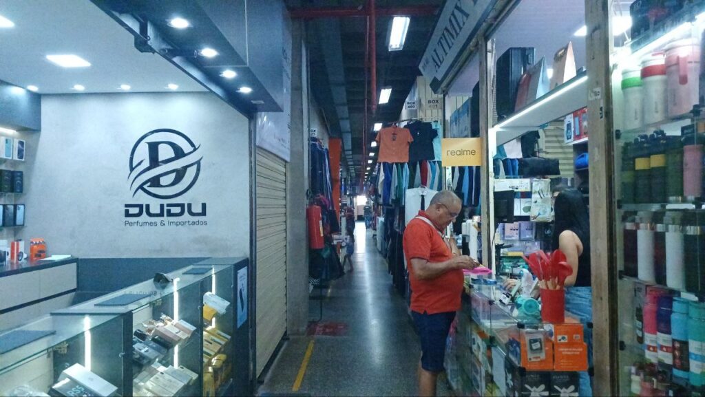 Quem busca eletrônicos, calçados, bijuterias, serviços de costura, sapateiro, conserto de celulares, perfumaria e maquiagens também encontra opções no espaço. Serviços públicos, como os oferecidos pela agência do Na Hora, podem ser acessados diretamente pelos frequentadores.